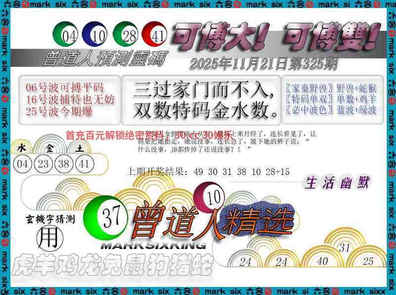 325期:男女二肖【男肖+兔羊】开:虎04准